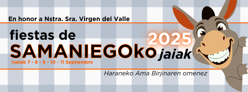 🎉Descargar Programa Festivo Completo 🎉 Samaniegoko Haraneko Andre Mariaren omenezko Jai Nagusiak itzuli dira! 🎉 Irailaren 7tik 11ra, Samaniego jai giroz beteko da gure Haraneko Andre Mariaren omenezko Jai Nagusiak ospatzeko. Tradizioz, emozioz eta alaitasunez beteriko egun batzuk izango dira, Samaniegoko Udala, Samaniegoko Gazteak, Samaniegoko Dantza